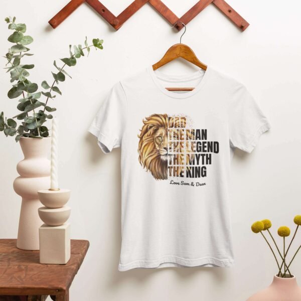 Celebrate the legendary dad in your life with our Dad Tee: The Man, The Legend, The Myth, The King. A tribute to his wisdom, strength, and unwavering love.