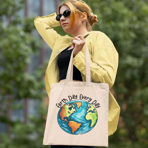 Stylish Sustainability – The neutral cotton fabric combined with bold Earthday artwork makes this tote a fashionable and environmentally responsible accessory.