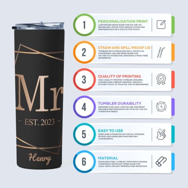 Celebrate love and commitment with our Personalised Mr. & Mrs. Wedding Tumbler, the perfect keepsake for newlyweds and anniversary celebrations.