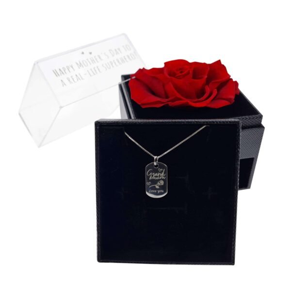 Premium Mothers Day Gift: Personalised Sterling Silver Pendant & Chain with Preserved Rose Box
